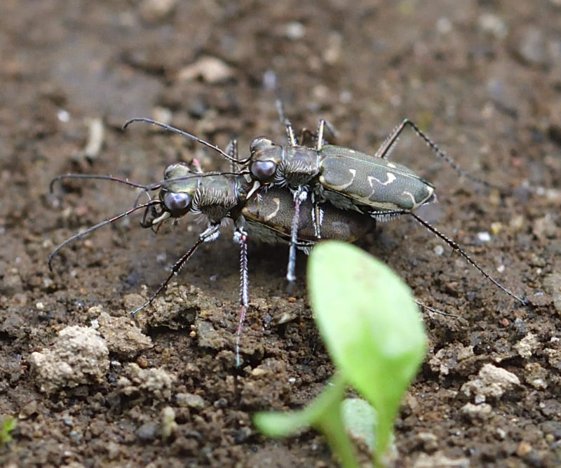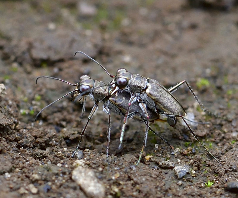 この時間帯はpairingが何組もいたのには驚きました。美しい並ハンミョウ(20mm)より1/20(0.9~10mm)くらいの大きさなので、撮ってみて初めてペアーだとわかりました。