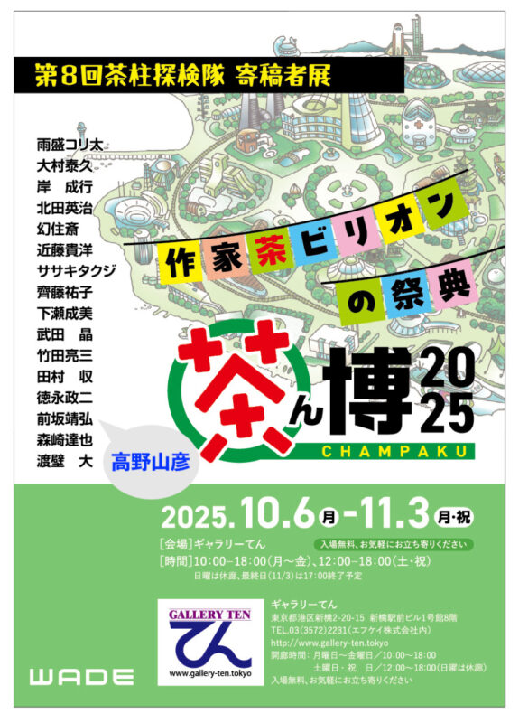 表題の通り、作家茶ビリオンの祭典 [茶ん博2025]が開催されています。 新進気鋭の作家の仲間に入れて頂き初のdebut !! 会場の地下街には旨いものもたくさん! ぜひお運びください! 入場料無料 開催地:ギャラリーてん  東京都港区新橋2-20-15 新橋駅前ビル1号館8階 TEL.03(3572)2231(エフケイ株式会社内) http://www.gallery-ten.tokyo 開廊時間:月曜日〜金曜日/10:00〜18:00 土曜日・祝日/12:00〜18:00 […]